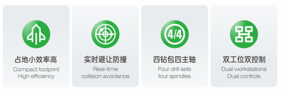 Dual workstations,four dnll sets,four spindles